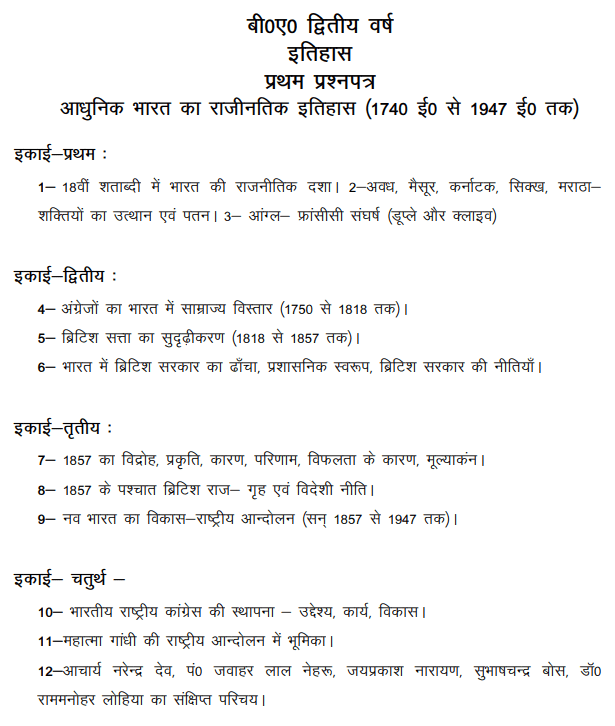 BA 2nd Year History Syllabus 2022 PDF in Hindi + Englis…